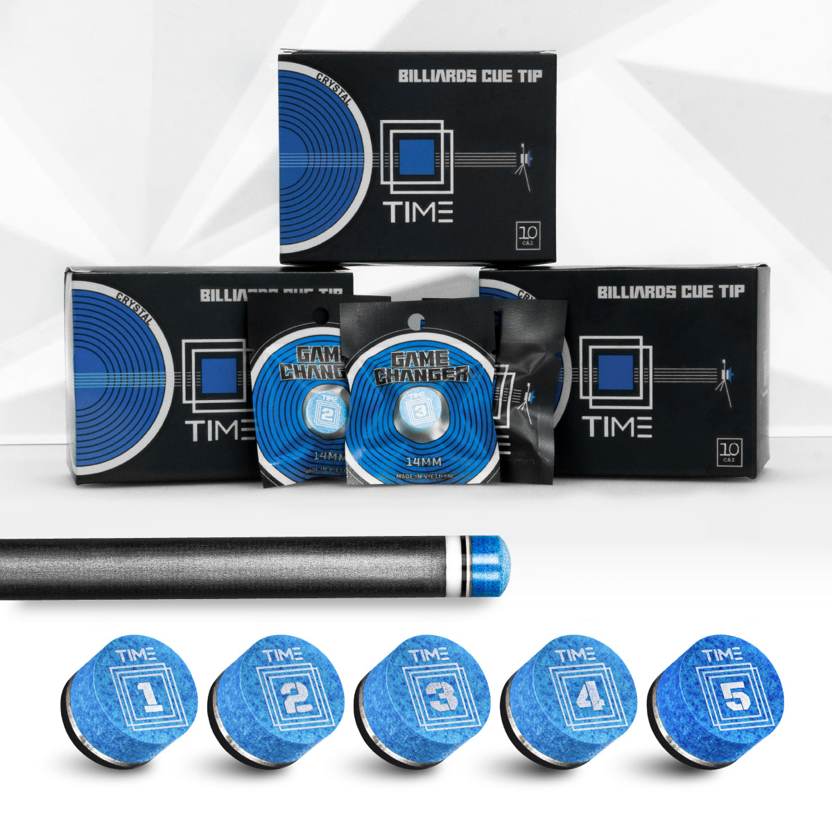 Time Crystal Tip is crafted from exclusive microfiber weave formula, “TIME” achieves exceptional durability, flexible elasticity, and outstanding chalk adhesion, setting a new standard in quality and sustainability. SPECIFICATION Material: Premium Microfiber WeaveLayer: 10 Layers MicrofiberColor: BlueHardness: TIME 1 (Super Soft), TIME 2 (Soft), TIME 3 (Medium), TIME 4 (Medium Hard), TIME 5 (Hard)Diameter: 14 mm
